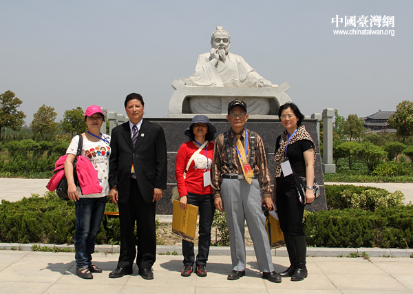 來(lái)自臺(tái)灣媒體的黃姓記者在先祖春申君黃歇雕像前合影留念。(中國(guó)臺(tái)灣網(wǎng) 普燕攝)
