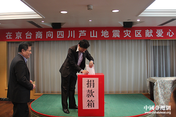 在京臺商向四川蘆山地震災區捐款獻愛心