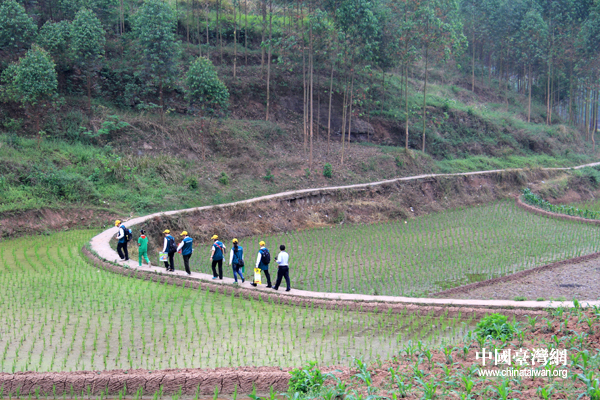 來自頂新集團的中高層們從普安小學步行一小時左右前往探望家訪留守兒童(中國臺灣網 李徽 攝)