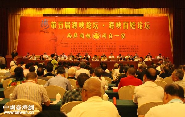 中國臺灣網6月16日漳州消息 第五屆海峽論壇·海峽百姓論壇開幕式今天在臺灣同胞的主要祖籍地福建漳州舉行,來自兩岸的宗親代表1200余人參加論壇,涉及兩岸80多個姓氏團體。中央統戰部副部長、中華海聯會副會長林智敏,全國臺聯黨組書記梁國揚以及臺灣兩岸和平發展論壇召集人、臺灣勞動黨主席吳榮元等兩岸嘉賓出席論壇。