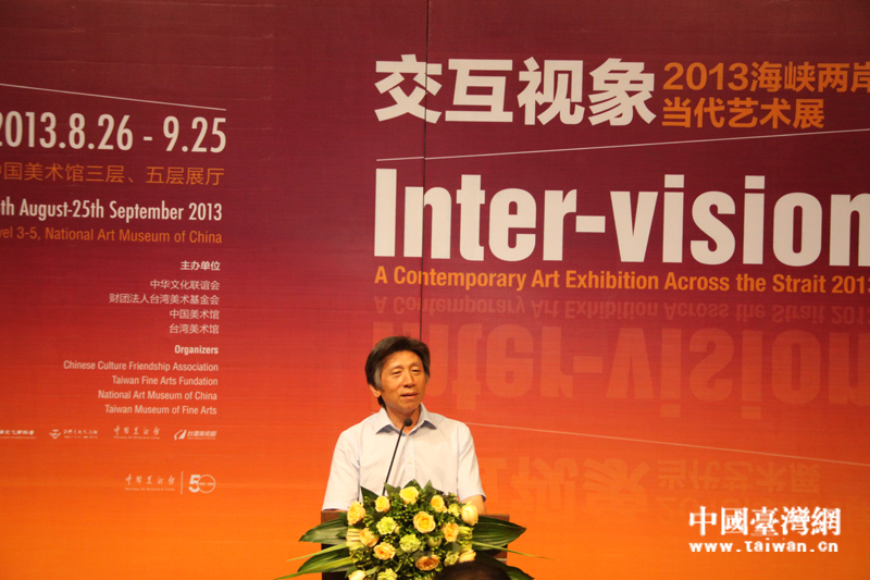 由中華文化聯(lián)誼會、臺灣美術(shù)基金會、中國美術(shù)館、臺灣美術(shù)館聯(lián)合主辦的“2013海峽兩岸當代藝術(shù)展”,8月26日在中國美術(shù)館開幕,中國美術(shù)館館長范迪安在開幕式上致辭。(中國臺灣網(wǎng) 蕪同 攝)