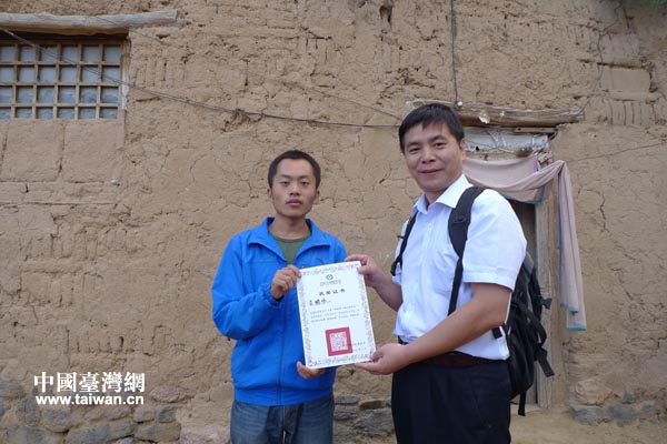 頂新公益基金會張建利經理前往貧困生呂鵬偉家中發放獎學金(中國臺灣網 李徽 攝)