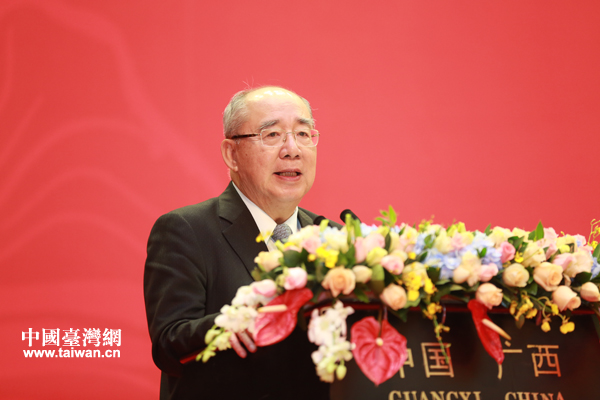 10月26日,中國國民黨榮譽主席吳伯雄出席第九屆兩岸經(jīng)貿(mào)文化論壇開幕式并致辭。(中國臺灣網(wǎng) 于斯文 攝)