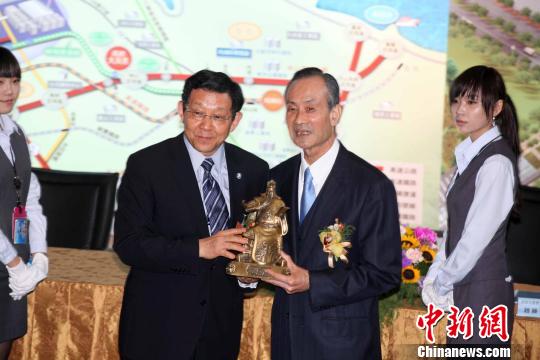 11月26日下午,海協(xié)會會長陳德銘率海協(xié)會經(jīng)貿(mào)交流團搭機抵臺后,首站參訪遠雄航空自由貿(mào)易港區(qū),受到臺灣遠雄企業(yè)集團董事長趙藤雄等人的熱烈歡迎。