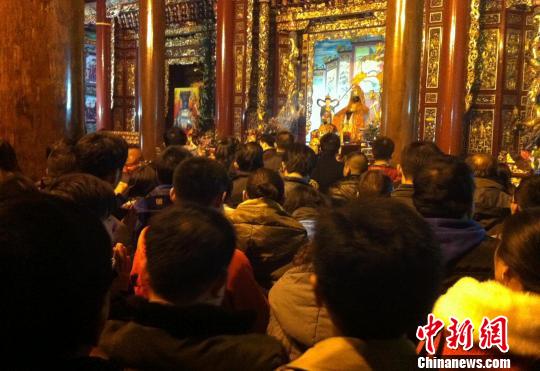 年糕﹑發(fā)糕﹑紅龜糕……供桌上擺滿的臺(tái)灣傳統(tǒng)年節(jié)美食,勾起了老臺(tái)商郭先生兒時(shí)參加?jì)屪鎻R會(huì)的美好回憶,“我專程從上海趕過來,上香謝天公、點(diǎn)龍鳳呈祥燈、燒頭香、兩將出巡,臺(tái)灣的古典宮廟禮制又重現(xiàn)了。”