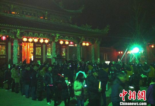 只見臺(tái)胞們手捧光明燈連成“龍圖大展”﹑“有鳳來儀”兩列長龍,跟隨著德高望重的長者走過象征著福祿壽的金水橋,祈禮二十四節(jié)氣,祈求風(fēng)調(diào)雨順、天下太平。別開生面的傳統(tǒng)古禮,吸引了不少前來燒頭香的市民,大家依葫蘆畫瓢地學(xué)樣沾福氣。