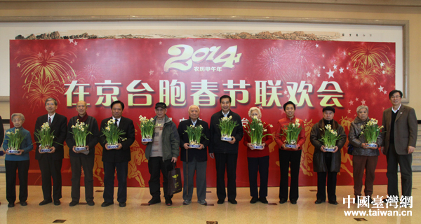 出席聯(lián)歡會(huì)的領(lǐng)導(dǎo)還特別向在京老臺(tái)胞贈(zèng)送了極具閩南特色,代表思念、團(tuán)員之意的漳州水仙。(中國(guó)臺(tái)灣網(wǎng) 楊永青 攝)