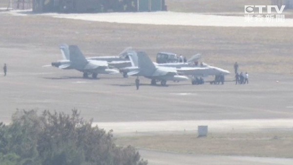 臺灣媒體曝光的美軍F-18戰斗機迫降后畫面