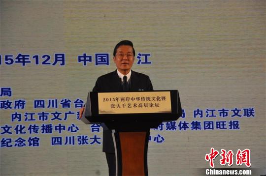 據悉,2015年兩岸中華傳統文化暨張大千藝術高層論壇由內江市人民政府、四川省臺辦共同主辦。參加此次論壇兩岸嘉賓200余人,包括著名文學家、劇作家、詩人蘇叔陽,原中國文聯副主席、中國文藝評論家協會主席、中央文史研究館館員仲呈祥,著名劇作家、雜文家、辭賦家魏明倫,著名作家、詩人鄭愁予,著名書法家、臺灣中華書學會會長、臺灣淡江大學教授張炳煌等。