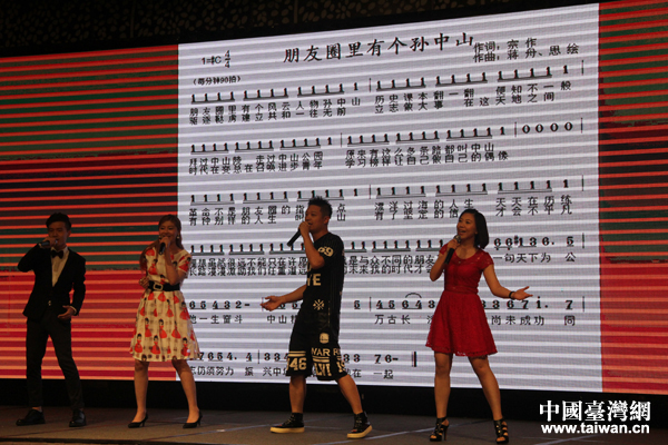 6月29日,民族魂·中山情——中華青年論壇暨紀念孫中山誕辰150周年活動發布會在廣東中山舉行,來自臺灣的歌手唐佑林、金桂桂與大陸歌手姚琦、莊楊筱以街舞的形式首唱了歌曲《朋友圈里有個孫中山》。(中國臺灣網 王怡然 攝)
