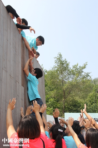 中國臺灣網7月7日北京訊 (記者 李杰)7月6日,參加第十七屆京臺青年交流周的兩岸青年大學生120人,來到了位于北京密云的北京國際青年訓練營,進行了拓展訓練,兩岸青年學生通過共同努力完成訓練項目,增進了交流和了解,并激發出創新意識和集體觀念。