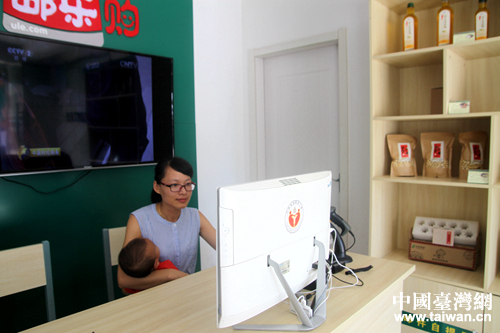 廖奶奶的孫媳婦、鳳崗村“農(nóng)村e郵”服務(wù)站站長曾美玉在查看網(wǎng)店訂單情況。(中國臺灣網(wǎng) 李杰 攝)