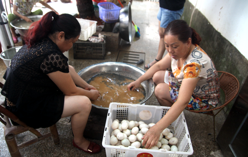 記者來到合作社時,廖秀英老人正在和家人社員一起,腌制從養(yǎng)殖戶家中收來的咸鴨蛋,經(jīng)過清洗、烘干、抹泥等一系列流程,再腌足40天以后,就可以通過自家開設(shè)的網(wǎng)店銷往各地。廖奶奶的合作社員現(xiàn)在已經(jīng)從剛設(shè)立時的24家擴(kuò)大到現(xiàn)在的32家,現(xiàn)在她的網(wǎng)店火了,平均每天都能賣2000—3000只咸鴨蛋,生意十分興旺。
