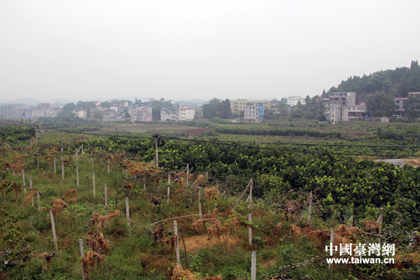 大片果樹,遠處的小洋樓多為菖蒲塘村村民所建。(中國臺灣網 朱煉 攝)
