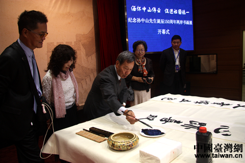 緬懷中山偉業(yè) 促進(jìn)祖國統(tǒng)一”——紀(jì)念孫中山先生誕辰150周年兩岸書畫展在北京開幕。(中國臺灣網(wǎng) 李杰 攝)