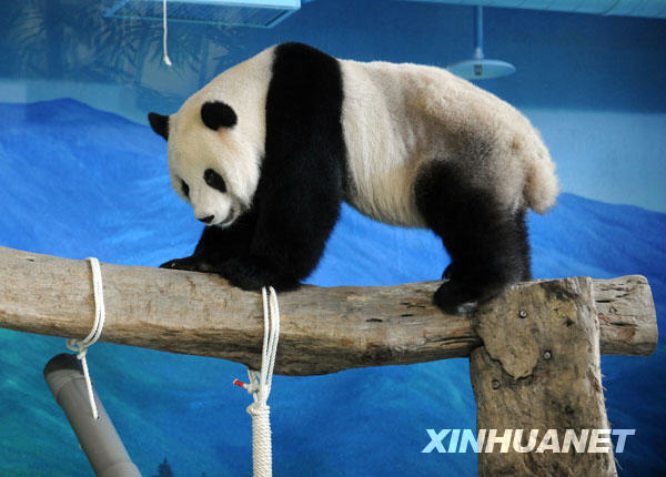 動物園給“團團”“圓圓”一家三口安排了專門的“戶外場所”。場地中有人造的攀爬支架,有木頭樁子,還有保育員們精心設計的玩具。比如,他們為了讓小“圓仔”盡快適應戶外生活,快樂成長,特地設計了許多玩具,最受青睞的是塑料桶做成的搖床和媽媽的飲水盆。