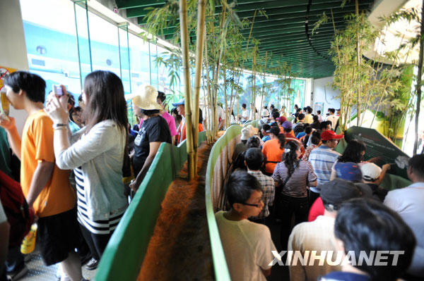 2009年11月8日,在臺北市立動物園,市民和游客排長隊觀看“團團”和“圓圓”。新華社發(吳景騰 攝)