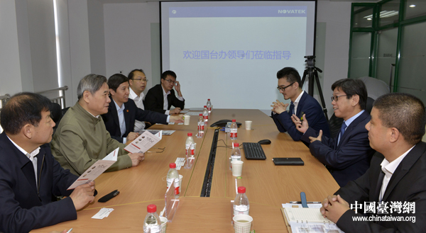 張志軍考察臺企聯詠電子科技(西安)有限公司。(陜西省臺辦供圖)