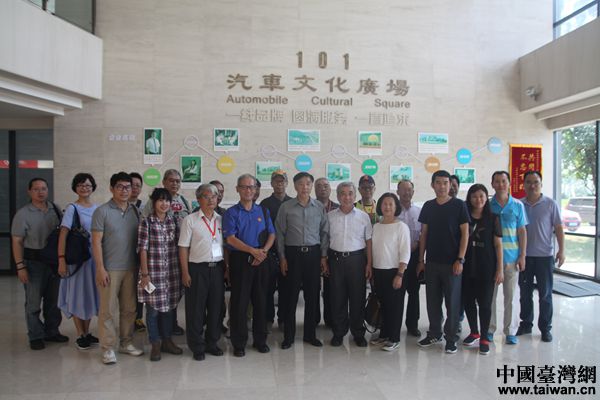 兩岸媒體人參訪101汽車文化廣場合影留念。(中國臺灣網 陳科炎 攝)