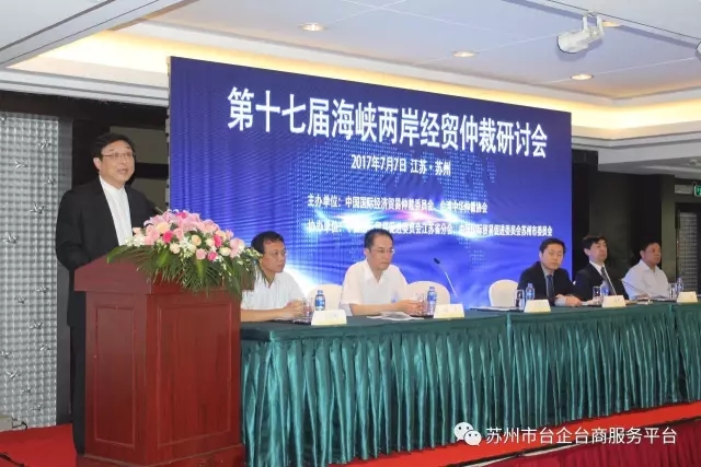 7月7日,由貿(mào)仲委和臺灣中華仲裁協(xié)會共同主辦的第十七屆海峽兩岸經(jīng)貿(mào)仲裁研討會在蘇州舉行,臺灣中華仲裁協(xié)會及來自兩岸法學(xué)界、工商界及仲裁機(jī)構(gòu)代表150余人參加了會議,國臺辦投訴協(xié)調(diào)局局長王剛、蘇州市臺辦主任楊軍出席了會議。