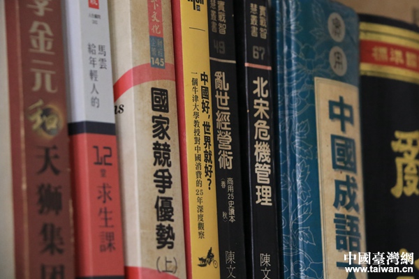 陳炳宏辦公室的書架除了與工作內容相關的書籍,還擺著關于大陸、中國歷史的書籍。(中國臺灣網 張麗媛 攝)