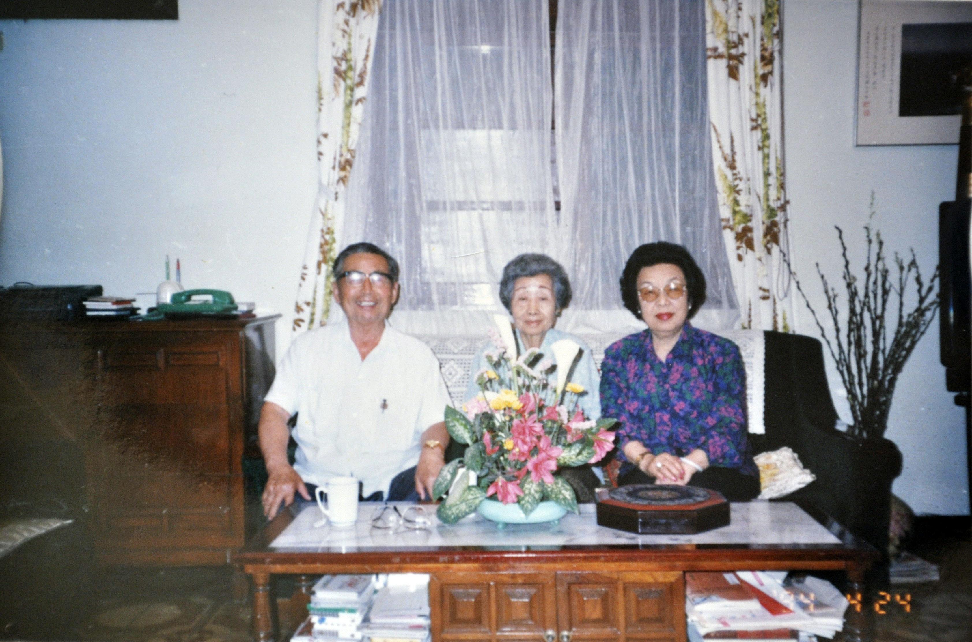 1994年羅文治(左)訪臺時,與其姐(中)、堂嫂丑輝合影。(圖片由羅吉元提供)