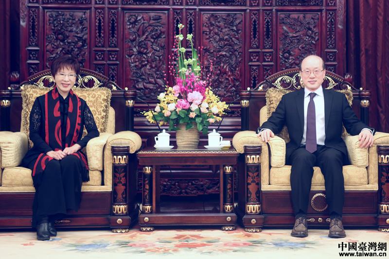 中共中央臺辦、國務(wù)院臺辦主任劉結(jié)一會見中國國民黨前主席洪秀柱。(中國臺灣網(wǎng) 扶海濤 攝)