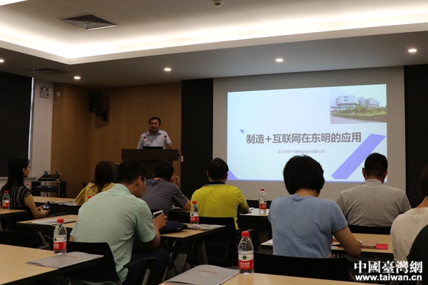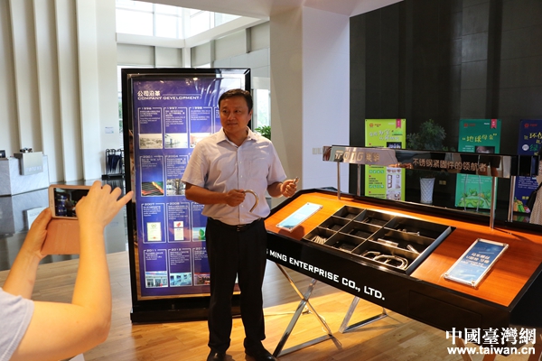浙江東明不銹鋼制品股份有限公司總經理蔡弘泉向兩岸記者介紹“互聯網+制造”。(中國臺灣網 李奕均 攝)