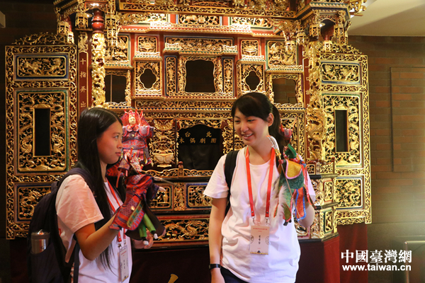 臺灣學生在臺灣會館體驗木偶游戲。(中國臺灣網(wǎng) 汪明珠 攝)