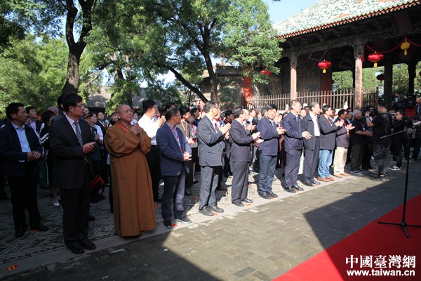 中國臺灣網9月23日運城訊(記者 許晗) 九月的河東大地,翰墨飄香,丹青溢彩。9月22日,海峽兩岸“關公文化名家書畫邀請展”在解州關帝廟廣場開展,山西省文聯黨組書記郭健在展會上致辭。來自海峽兩岸書畫名家的百余幅作品參加展出。民革中央、中國文聯、山西省和運城市等相關領導,以及大陸方面著名專家學者、書畫藝術家和臺灣方面專家學者、知名人士等出席開展儀式并參觀展覽。