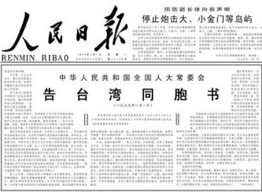 同時,大陸宣布停止炮擊大、小金門等島嶼