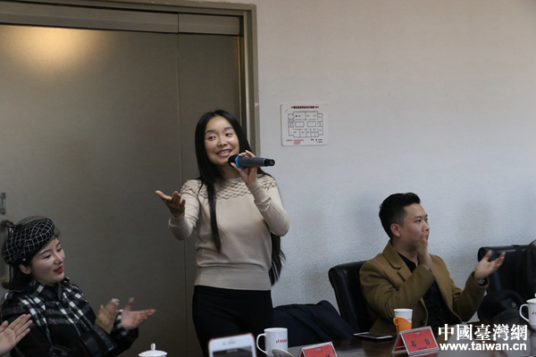 鄧容現(xiàn)場清唱臺(tái)灣高山族風(fēng)格的歌曲《阿里山的姑娘》。(中國臺(tái)灣網(wǎng) 汪明珠 攝)