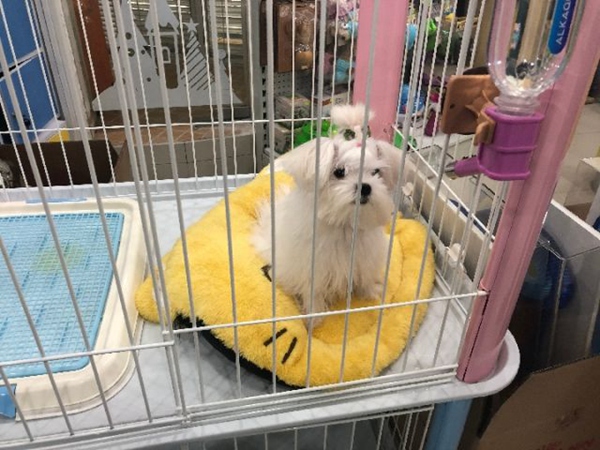 在上海頑皮家族寵物生活館度過春節的寵物狗。新華社記者許曉青攝