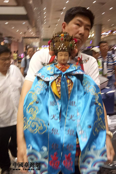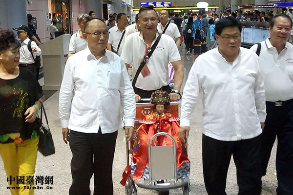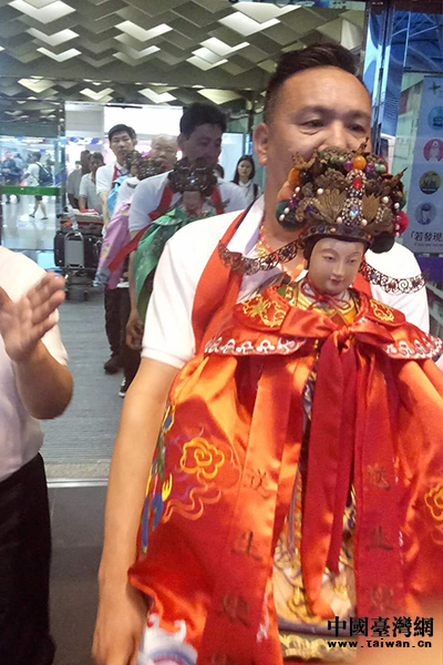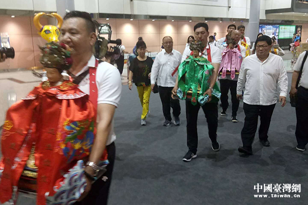 兩岸宮廟人士護送媽祖走出機場。(中國臺灣網 發(fā))