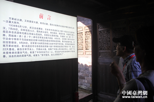 中國臺灣網6月6日訊(記者 全志強)6月4日,第十三屆黃埔論壇參訪團到達江西德安縣,實地參訪抗戰初期三次大捷之一的“萬家嶺大捷”。1938年9-10月,中國軍隊薛岳兵團在萬家嶺圍擊日軍第106師團,殲敵1萬余人,使曾為侵華日軍主力的敵106師團從此徹底失去作戰能力。“萬家嶺大捷”創造了中國抗戰史上的輝煌戰績,極大地振奮了中國人民的抗日信心。