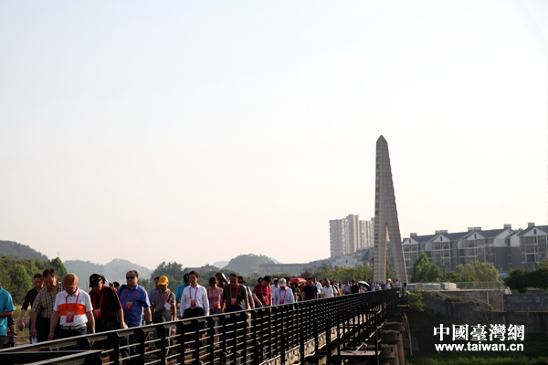 參訪團成員走過萬家嶺大捷紀念碑。 (中國臺灣網 全志強 攝)