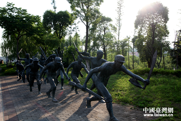 萬家嶺大捷紀念園中無袖戰士群像。 (中國臺灣網 全志強 攝)