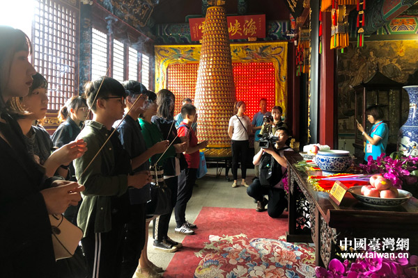 臺灣學生在天后宮祭拜(中國臺灣網 楊旋 攝)
