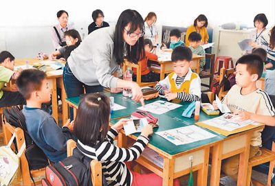 云林縣仁和小學(xué)舉辦“跨年級(jí)教學(xué)”公開課,孩子們?cè)趯P鸟雎犂蠋熤v課。(資料圖片)