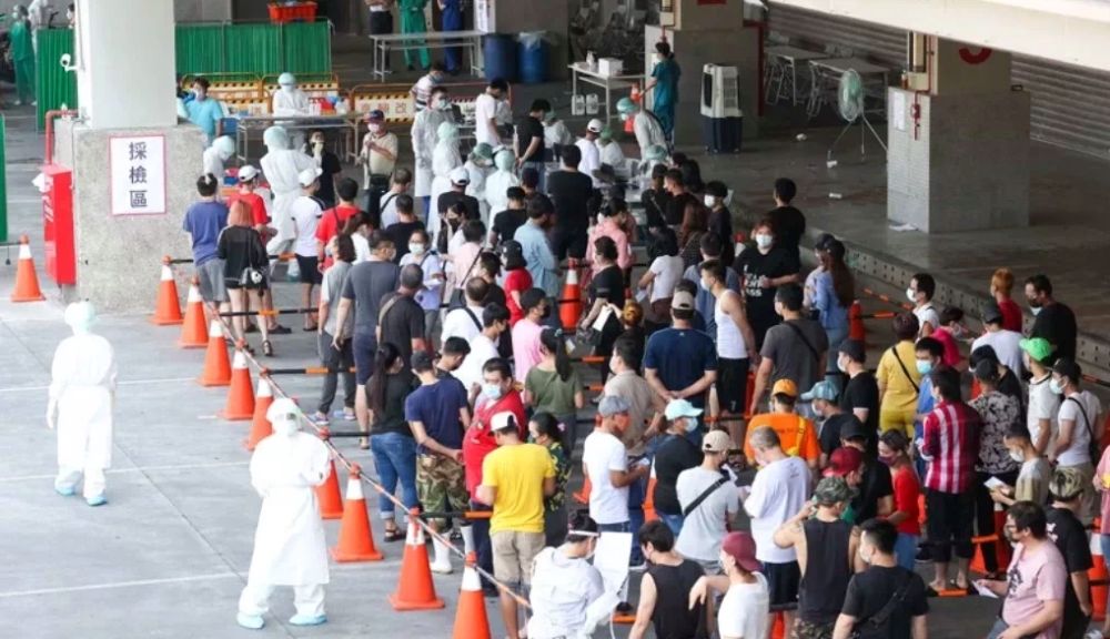 臺灣民眾大排長龍進(jìn)行篩檢。圖片源自臺灣中時電子網(wǎng)