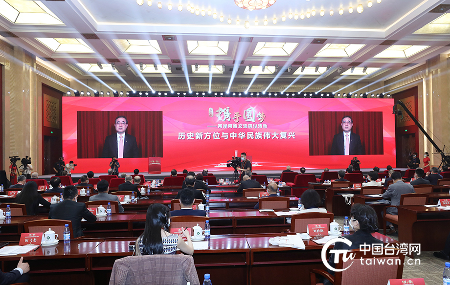 第二屆攜手圓夢——兩岸同胞交流研討活動今日(7日)上午在北京舉行,新黨主席吳成典在大會上發表視頻致辭。(中國臺灣網 尹賽楠 攝)