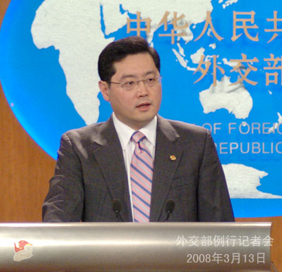 2008年3月13日下午,外交部發(fā)言人秦剛舉行例行記者會(huì),就東海問題、中國警方赴日調(diào)查餃子事件、外國記者在華采訪、秘魯總統(tǒng)和韓國外長訪華等答記者問。