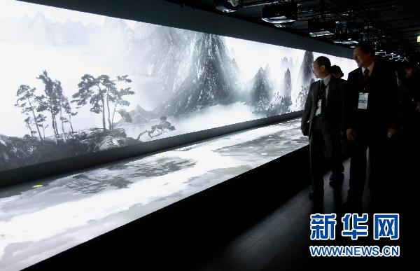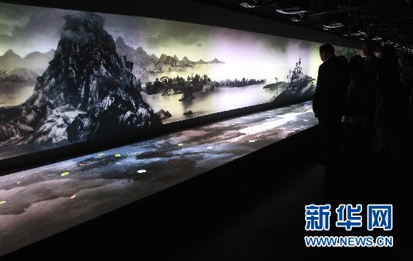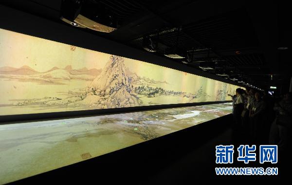 而為滿足人們讓殘畫“團(tuán)圓”的心愿,館方獨(dú)具巧思地運(yùn)用多媒體技術(shù),模擬圖卷合璧后的情景再加上新的創(chuàng)造,最后通過3D技術(shù)呈現(xiàn)到40米長(zhǎng)的電子屏上。