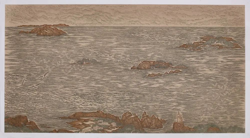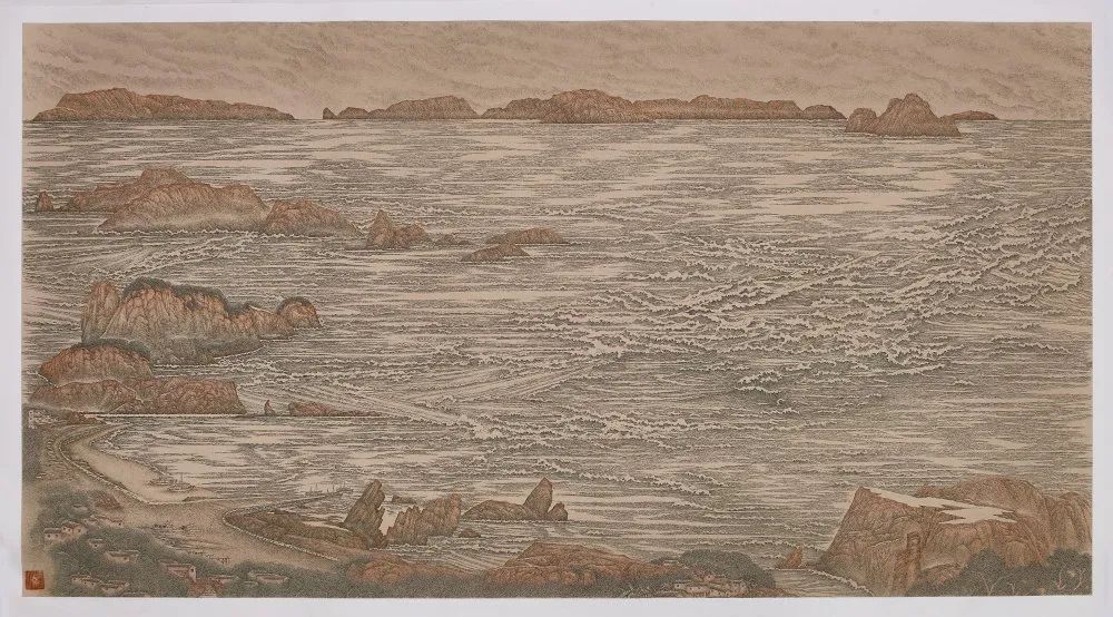 巧的是,浙江洞頭與臺灣一水相連,地緣相近、人緣相親、語言相通、文緣相承,此次,以侯傳芳、金國斌、吳聘真、葉向榮、呂相國等藝術家組成的創作團隊,繼完成《八百里甌江圖》之后,于2020年啟始,歷時一年半余,用獨特的鋼筆畫技法,以甌江入海口的半屏山為開篇,順江入海,延綿海峽,直至高雄半屏山,創作了《兩岸半屏山》山海長卷,展現了兩岸半屏山山水相連、人文相通的歷史淵源。《兩岸半屏山》長卷由12幅高1米、長2米的畫卷組成,總長24米。