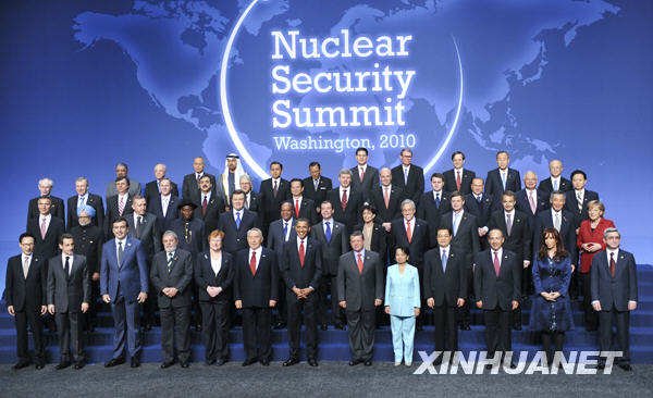 4月13日,中國國家主席胡錦濤在華盛頓會議中心出席核安全峰會時和與會領(lǐng)導(dǎo)人合影。新華社記者 李學(xué)仁 攝