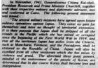 1945年,日本簽署《無條件投降協議》,并同意接受《波茨坦公告》。一直到近年來,日本、美國以及毛澤東領導的中國都認為,《開羅宣言》是停戰的基石。就我所知,《開羅宣言》通知日本,它必須為投降作好準備,宣言描述了日本必須歸還所掠奪領土的大致輪廓。