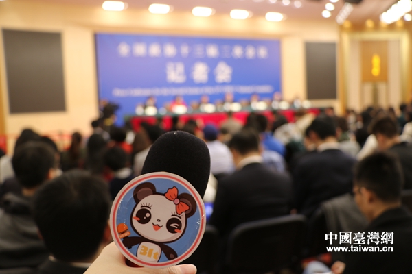 “融融”走進(jìn)全國(guó)兩會(huì)新聞中心。(中國(guó)臺(tái)灣網(wǎng) 雍紫薇 攝)