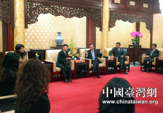 3月22日下午,中共中央臺辦主任王毅在北京釣魚臺賓館會見來訪的臺灣前高雄縣長楊秋興一行。 (中國臺灣網(wǎng) 田云鵬 攝)