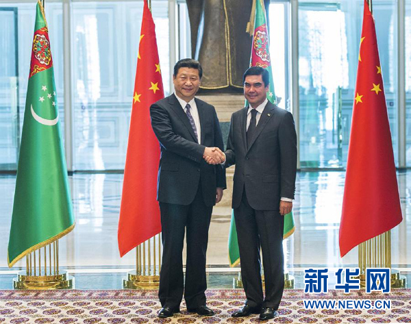 9月3日,國家主席習近平在阿什哈巴德同土庫曼斯坦總統別爾德穆哈梅多夫舉行會談。 新華社記者王曄攝