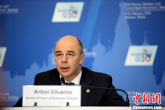 二十國(guó)集團(tuán)(G20)財(cái)長(zhǎng)和央行行長(zhǎng)會(huì)議16日在俄羅斯莫斯科閉幕,會(huì)議就全球經(jīng)濟(jì)形勢(shì)、G20“強(qiáng)勁、可持續(xù)、平衡增長(zhǎng)框架”、長(zhǎng)期投資融資、金融改革等進(jìn)行了討論。圖為俄羅斯財(cái)政部長(zhǎng)西盧阿諾夫在本次會(huì)議后召開(kāi)新聞發(fā)布會(huì),回答記者提問(wèn)。中新社發(fā)賈靖峰 攝
